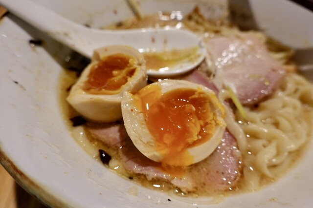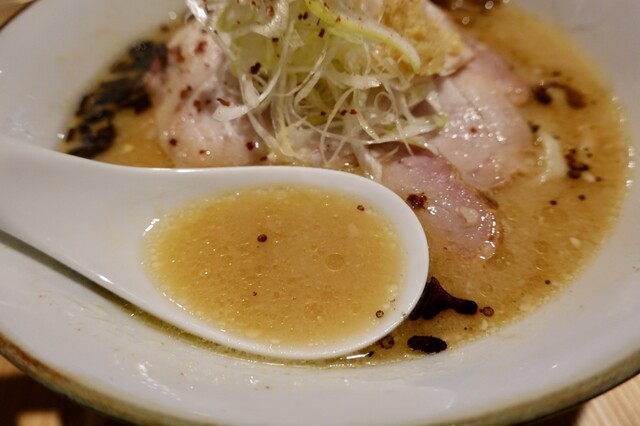 魚介の旨みが濃縮したスープ、もちもちの手もみ麺(を選びました)、ジューシーなチャーシュー、こりこりのメンマ、しゃっきりしたネギ、全てがめちゃくちゃ美味しい……。ノーマルより好きかも。