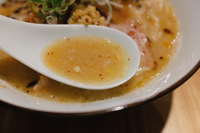 いつもノーマルの醤油ばかり食べていて白醤油はつけ麺しか食べたことがなかったので、特製の白醤油を選びました。
