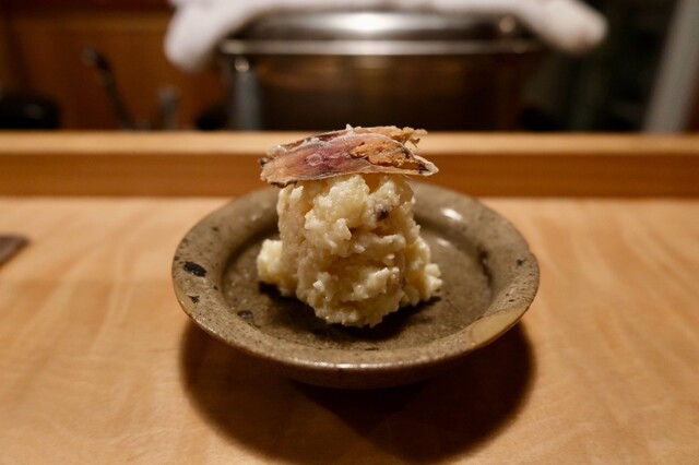 ③ろはん風ポテサラ。鮒寿司が入っている、酒の肴にぴったりのポテサラ。