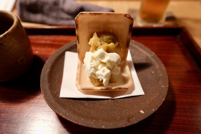 ⑩デザートは、安納芋とマスカルポーネ最中。モナカの皮がぱりぱり、口の中で儚くほどける感覚がたまりません。美味しかった!