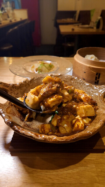 音と香りで食欲を掴まれる、おこげ入り麻婆豆腐