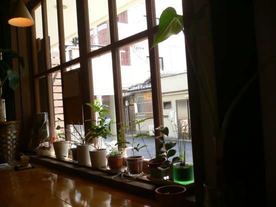 今日は、中庭のみえる席にすわりました。