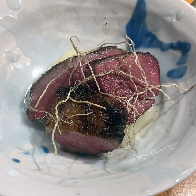 ●鴨ネギ登場。新潟産ま鴨のももの厚切りとロースに、鴨っぽい臭み一切無し。