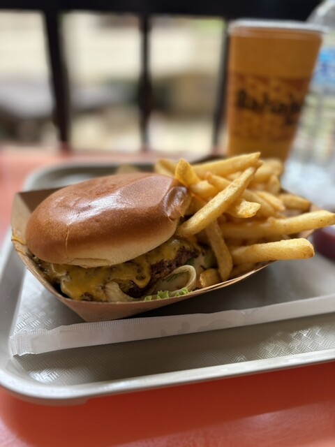 チーズバーガーとスプライトドリンク
