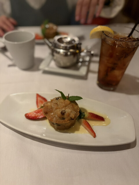 デザートも何種類かあってりんごのプディングを選び食後のドリンクはわたしはアイスティ、友達はホットティーをお願いしました。パンもバターつけて食べたり美味しかったけど残してしまいました。シーザーサラダも残しました泣(パンとサラダ持ち帰りできたけどやめました)