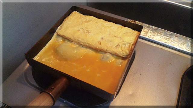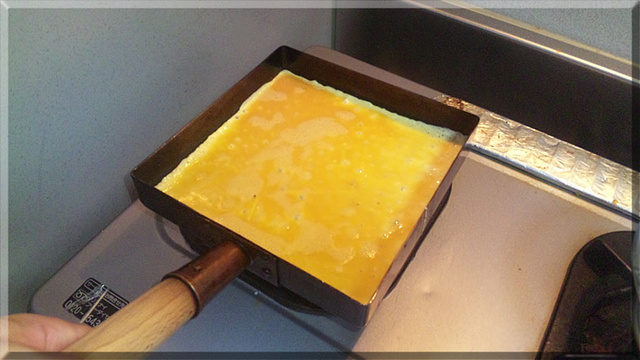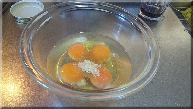 玉子、砂糖、サラダ油、かつおだし(まだ入れてない)