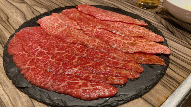 マグロボードの一品であるハラミ(だったと思う)は、焼き石でサッと焼いて食べるようだ。
