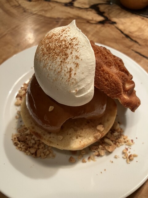 2025.11【再訪】JR中央線西国分寺駅から徒歩3分。日曜の午後利用。相変わらず混んでいて…店内でしばらく待機。注文したのは、季節限定のメニューの、クルミドクリームケーキりんご&秋の珈琲のセット1,550円。支払いは現金のみ。