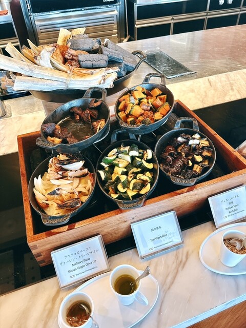 お野菜はサラダに焼き野菜がありましたし、大皿から取るお料理は少なく、小鉢に入った美味しそうな生ハムやチーズ、ローストビーフなどなど全然飽きずに食べれました。