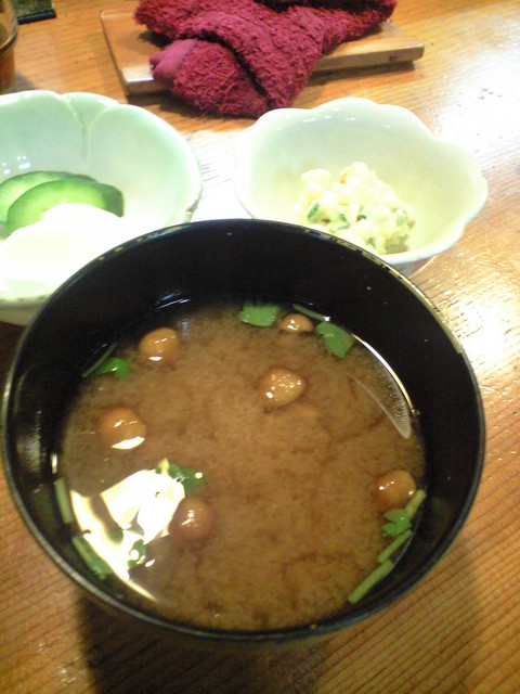 今は使い捨てのおしぼりに。あのあずき色のおしぼり好きだったのに~。