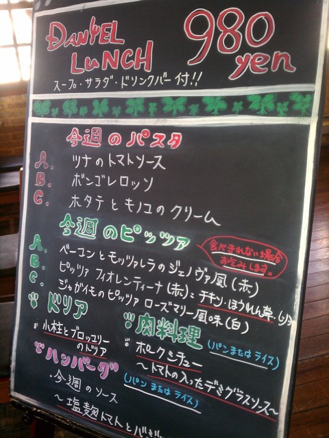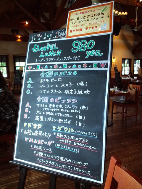 ランチメニューはパスタ・ピッツア・ドリア・グリル・ハンバーグまであり幅広い。