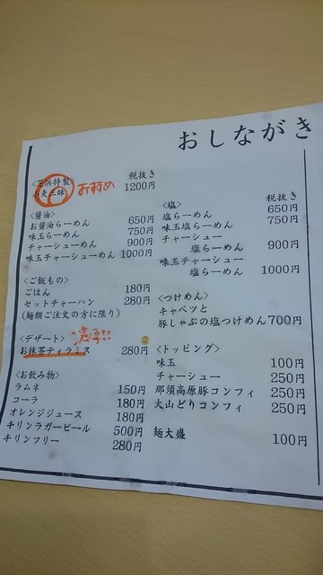 メニューは大きく分けて、醤油・塩・つけめんの3部構成。