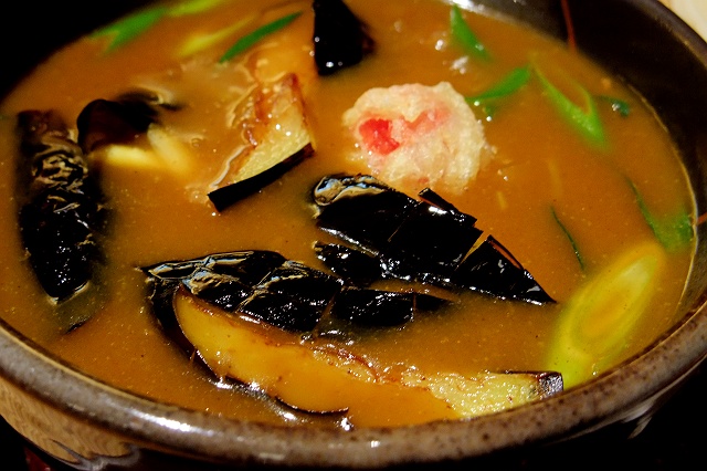 つけ汁の中には、ジューシーなナスの素揚げ、噛み締めれば酸味の利いたプチトマトの天ぷら、牛肉、長ネギが入っていて旨し!