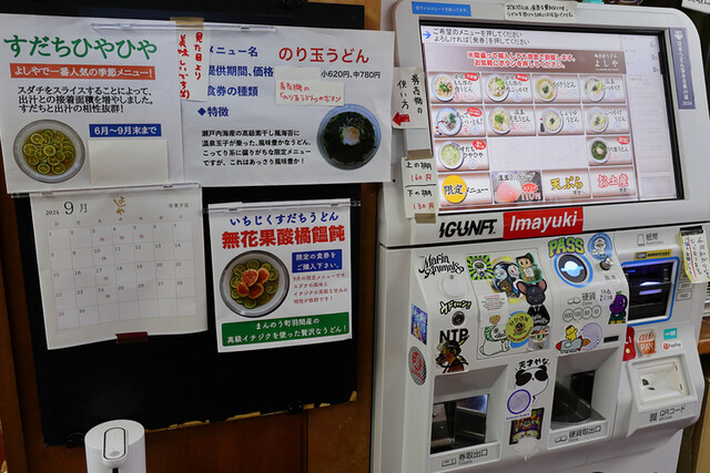 この時期の限定メニューは「アゲビタC」、「のり玉うどん」、「すだちひやひや」、「鶏マユぶっかけ」