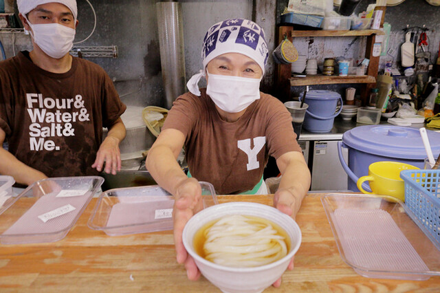 平日でも午前7時の開店時刻から8時頃は出勤前の「朝うどん」で結構混雑しています。