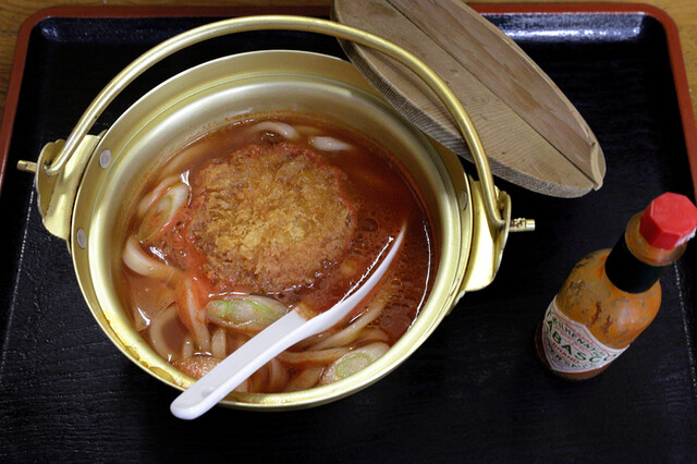イタリアンな鍋焼きうどんはタバスコで味変! 純手打うどんよしや @ 丸亀市飯野町