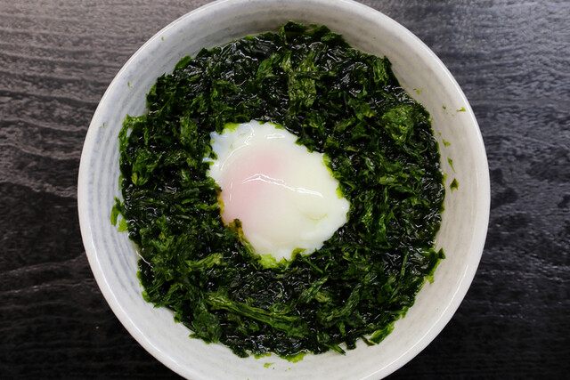 瀬戸内海産の高級素干し風海苔に温泉玉子が乗った、風味豊かなあつあつうどん。