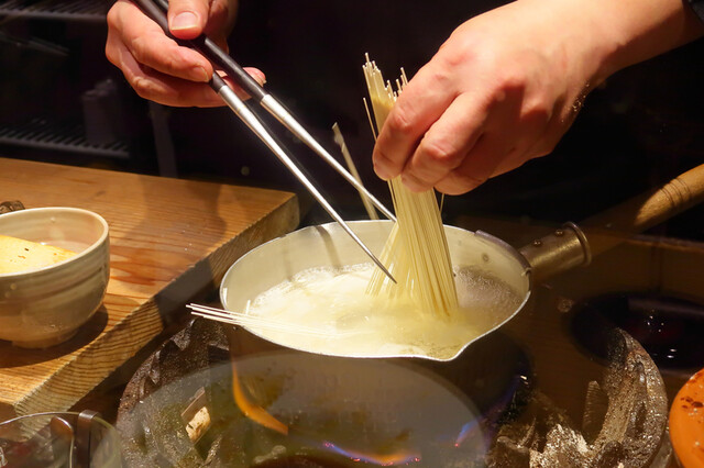 カウンター席で店主が店主がお料理するのがかぶりつきで見られます。