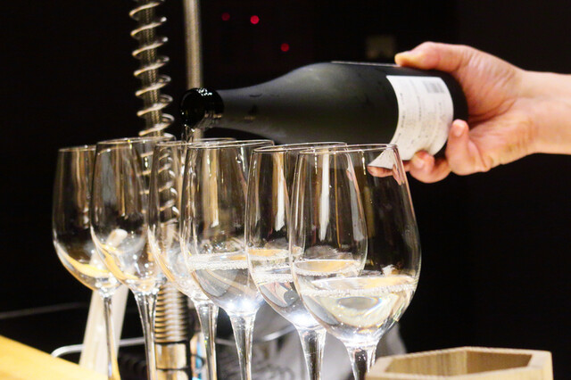 ワイングラスでいただく伊丹市の小西酒造「超特撰白雪伊丹諸白大吟醸」