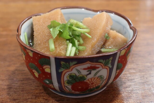 なんと我々が入店した時、関東煮鍋に「ごぼてん」が入ってなかったんで、気を利かせて1本入れてくれはったんですて。ということで「ごぼてん」頂きましたわ(^^;。もちろん美味しかったです♪♪