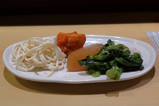 平日の宵の2軒目で1人訪問。休肝日の散歩で出かけたんやけども雷で中止。そして何時もの店で飲んでしもたからもう、シメまで行ってまいましたわ(^^;