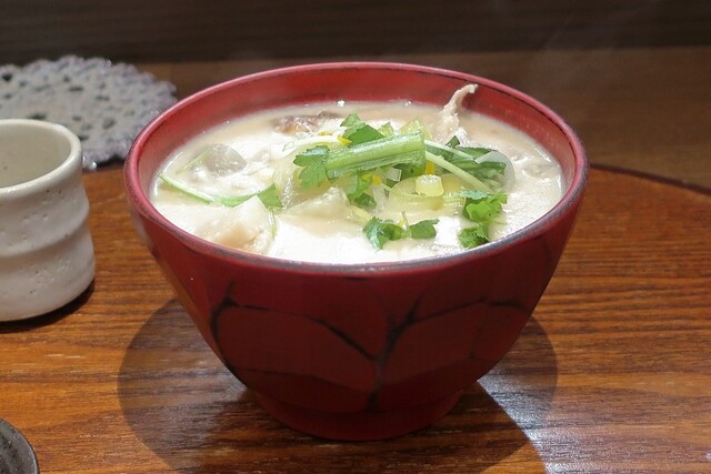 そして頂いたんは、卵入りの湯豆腐、ブタ白菜、筑前煮、ゆり根玉子とじ。飲み物は、サッポロ黒ラベル生ビール2杯と土佐の清酒 南 純米吟醸生酒 おりがらみを1杯。