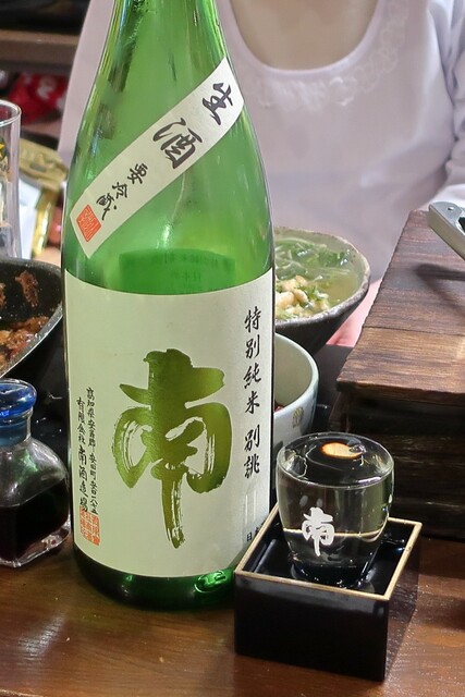 飲み物はサッポロ黒ラベル生ビール2杯から日本酒に移って開けたての南3種類、純米吟醸 吟の夢 生酒、純米吟醸 備前雄町 限定直汲 生酒、純米吟醸 備前雄町50%精米。同じ南の純米吟醸でも飲み比べてみたら違うもんですな。