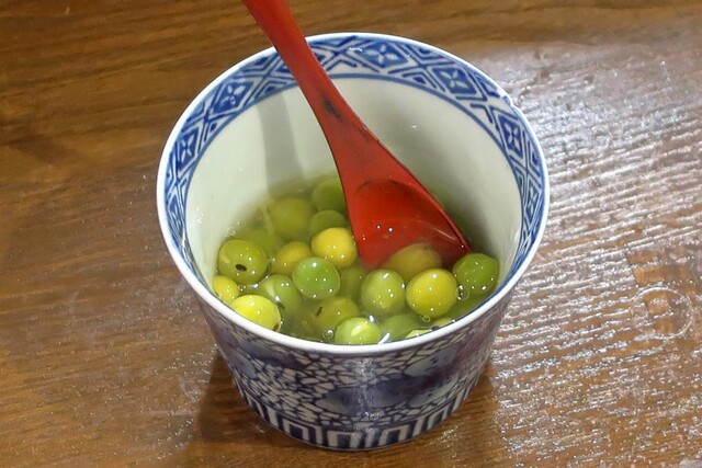 そして美術館・博物館に詳しい、常連さんに色んなことを教えてもらいながら頂いたんは、おでん4種、魚の炊いたん、美味しいバケット、石清水八幡宮門前名物の走井餅、いちじくの何か、おじゃことオクラ。