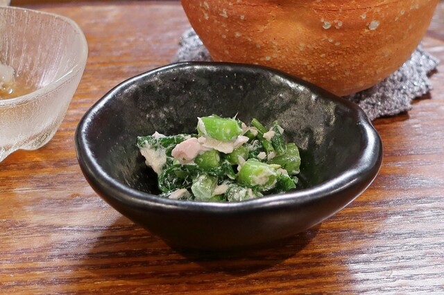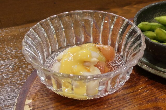 とある宵の1軒目で1人訪問。そして頂いたんは、おでんの 生こんにゃく、ごぼ天、大根、厚あげから 丹波の黒枝豆、おまかせ天ぷら5品、牛すじと生姜、天ぷらを追加で玉ねぎ、むかごなど。いつも美味しい天ぷらにおばんざいを出してくれはりますで♪♪