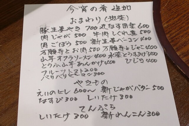 休日の1軒目で1人訪問。そして頂いたんは おばんざい3品と いつもさらっと美味しい天ぷら5品、ポン菓子、ポテトサラダからさらにおばんざい2品。