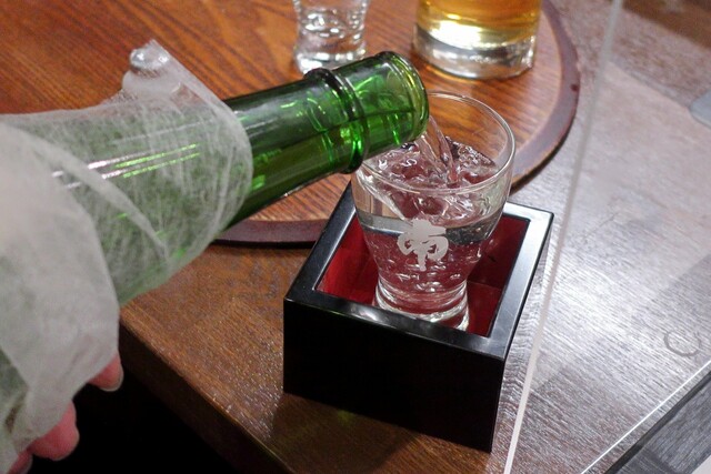 飲み物はサッポロ黒ラベル生ビール数杯から神聖の大吟醸を冷で1合と燗で1合。伏見の酒は口当たりが優しいですな。冷でも燗でも美味しかったですよ!!