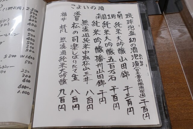 飲み物はサッポロ黒ラベル生ビール1杯から年末ということで上等な酒を2杯、南 純米吟醸 雄町900円と南 純米大吟醸 山田錦1400円!!。純米大吟醸は飲みやすく流石の美味でしたで(^з^)-☆