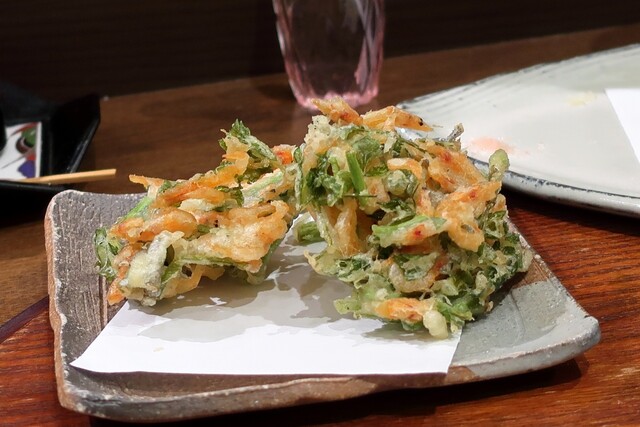 平日の夜の1軒目で訪問。冬至ということで先ずは南瓜。そして お造り盛合わせ、大根葉とじゃこ。この日届きたての日生の殻付 活若かきの焼き牡蠣をたっぷり♪♪。シメは天ぷらで天ぷらは 門真れんこん2つ、たらの芽、菜の花。
