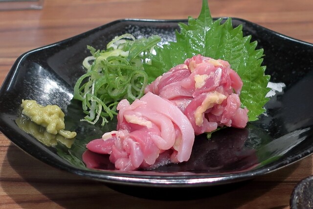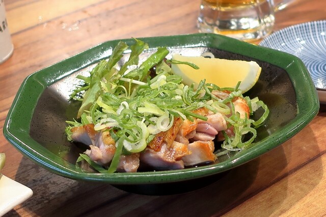 さっさと切ってもろて まだ17時前!ということで15時開店のコチラで、親鳥造り2種盛り、ガリトマト、旨鶏シウマイ、とうもろこし唐揚げを頂きました。飲み物はプレミアムモルツ生ビール4杯と翠ソーダ1杯。