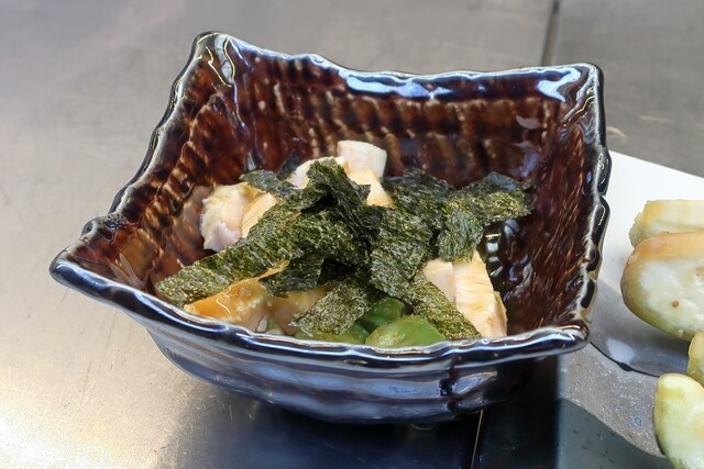 そしてテーブル席で6人で頂いたんは、鬼おろしポン酢(55円)、山芋キムチ、かぶら浅漬け、蒸しそら豆、鶏のアボカドわさび、ゆず胡椒シウマイ、ガリマヨシウマイを2、3人前ずつ。ええ感じの選択で、そこそこ長居させてもらいましたで♪♪