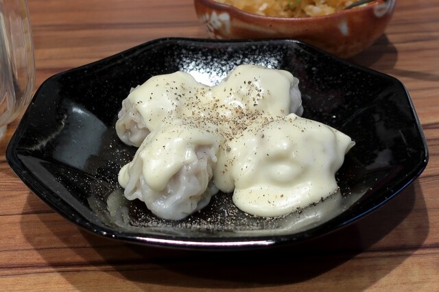続いての「にらシウマイ」は、旨鶏シウマイに「にらソース」をトッピングしたやつです。ソースの味がシウマイに馴染んで美味しかったです。