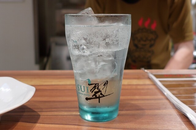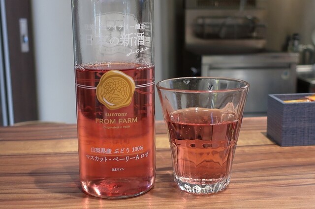 飲み物はプレミアムモルツ生ビール1杯、翠ソーダ1杯、店主さんが勧めてくれはった山梨県産ぶどう100% マスカット・ベリーA ロゼ。