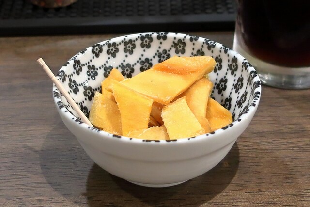 そして頂いたアテは 高カカオチョコレートから、何となく思い出になりそうな 和FISH&CHIPS。この店での飲み納めは、一番搾り生ビール1杯、プレミアム無添加レモンサワー1杯、パンクIPA1杯、エルビスジュース グレープフルーツIPA1杯。