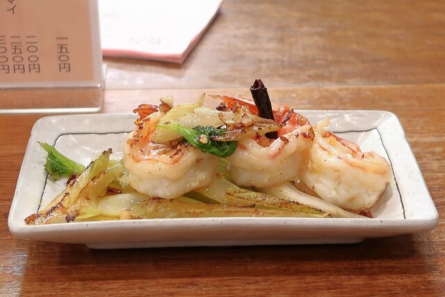 海老とセロリのオイル焼