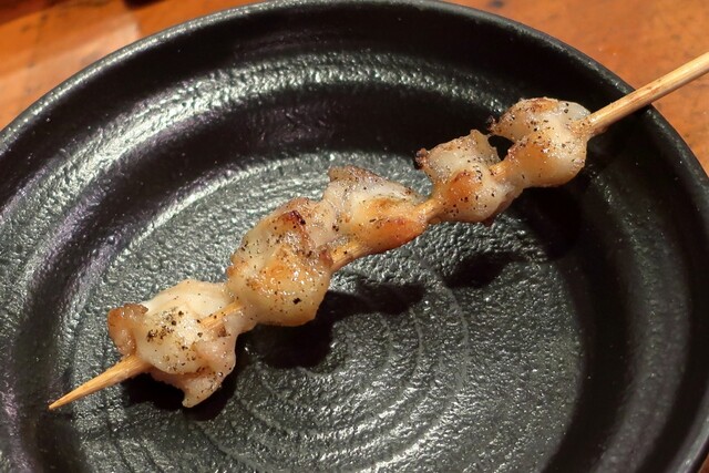 そしてそんな中、通常より品数を減らした特別メニューの中から頂いたんは、うずら醤油漬け、丹波地鶏のおまかせ焼鳥盛り合わせ、丹波地鶏の蒸し鶏、大根の酢漬け少々、ささみチーズ、なんこつ、こころのこり。落ち着いた雰囲気の中、美味しく頂けましたで(^^)