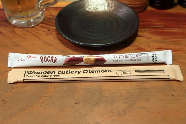 休日の宵の2軒目で1人訪問。そして頂いたんは、お土産の北陸地区限定のポッキー「五郎島金時」1本から、もやしナムル、丹波地鶏の油淋鶏、丹波地鶏のロースト3/4ポンド。