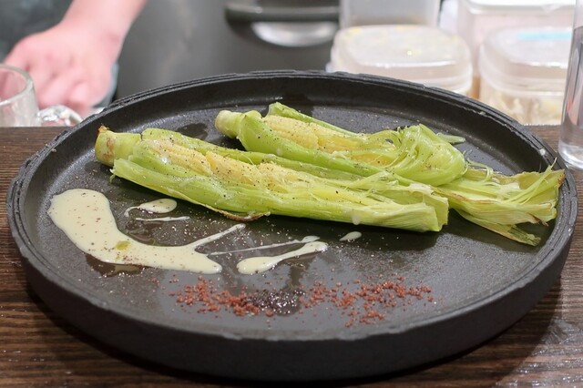 ヤングコーンの蒸し焼き きもアンチョビソース