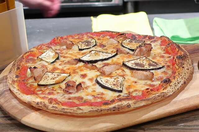 甘辛とり肩ロースとなすのトマトピザ