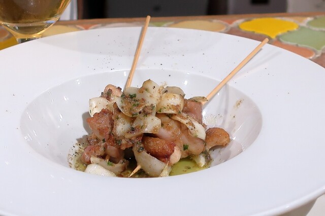 食べ物は自家製ピザ2種にフリッタータを頂いたな。ピザは新じゃがいもと鶏の肝アンチョビクリームとヤルバチコのトマトマリナーラやそうですわ。