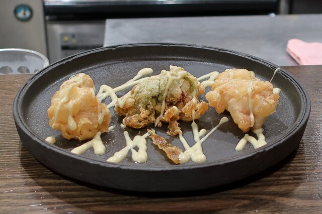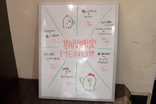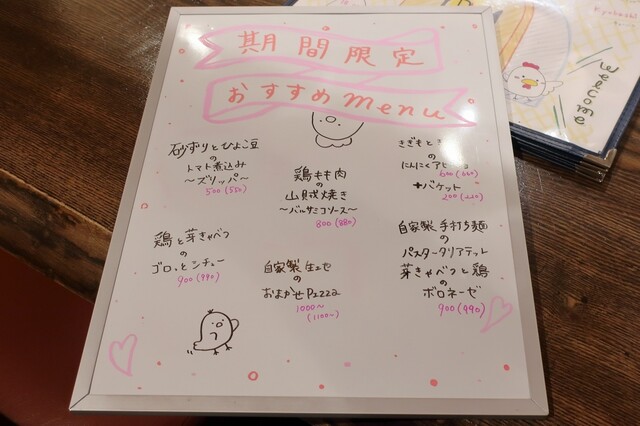 とある宵の2軒目で1人シメ訪問。そして頂いたんは、期間限定おすすめメニューから 砂ずりとひよこ豆のトマト煮込み~ズリッパ~、ふきと鶏皮の新しいのん?、ピザ生地を揚げたん、鶏もも肉の山賊焼き~バルサミコソース~、ガトーショコラ?チョコテリーヌ?、ピザ生地を揚げたん おっとっと風、ふきと鶏皮の新しいのん?2回目。
