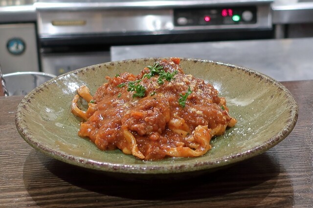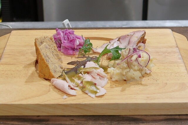 週末の2軒目で1人訪問。そして頂いたんは前菜3種盛りから、シメで期間限定おすすめメニューから自家製手打ち麺のパスタ タリアテッレ 芽きゃべつと鶏のボロネーゼ。
