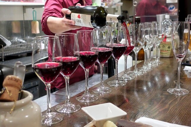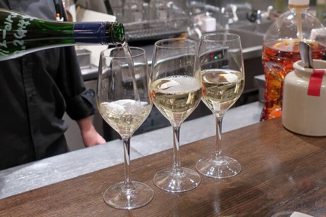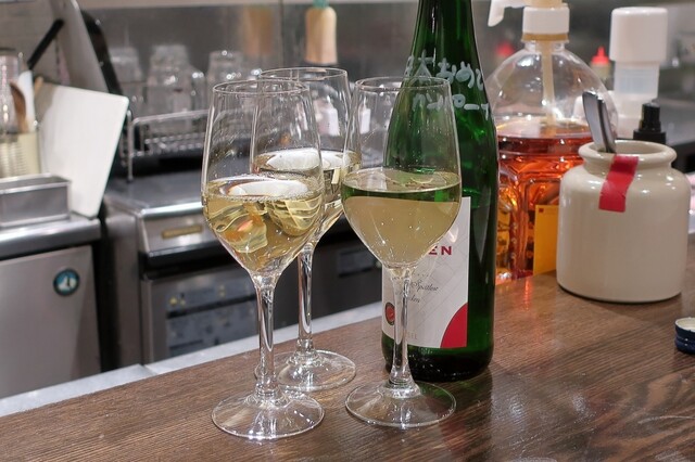 とある宵の3軒目で1人シメ訪問。WBCで日本チームが優勝したおかげで飲ませてもらえる、振る舞いのお祝いワインを頂きに行きましたで(^^)