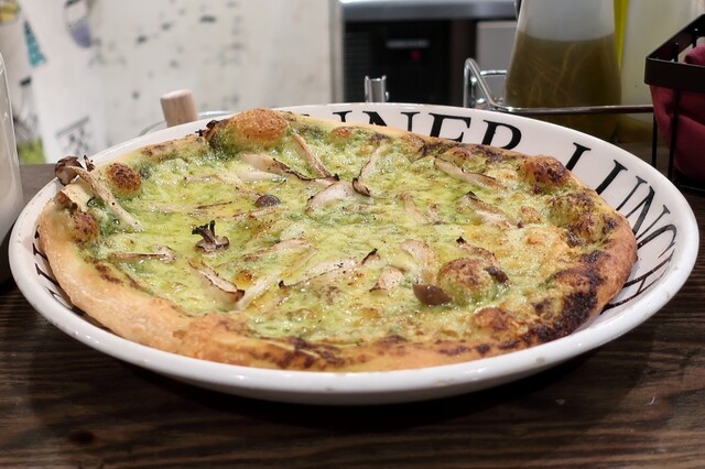 フレッシュニンニクとバジルクリームのきのこピザ