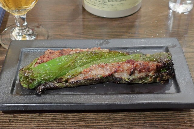 大ぶりししとうとハンバーグミンチの肉詰め