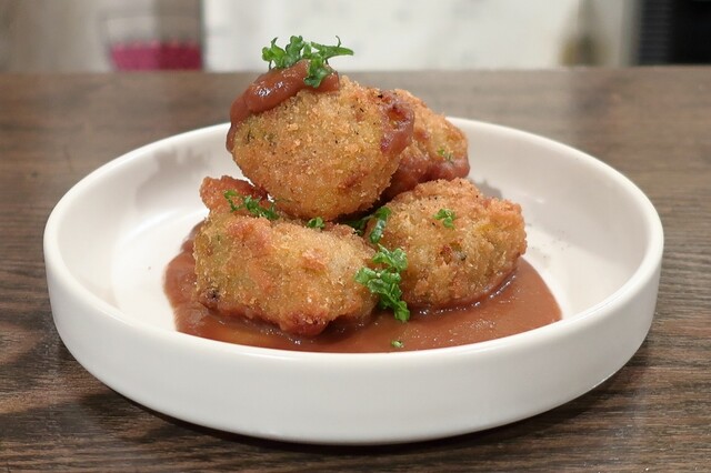 鶏ミンチのかぼちゃコロッケ 鶏デミグラスソースがけ